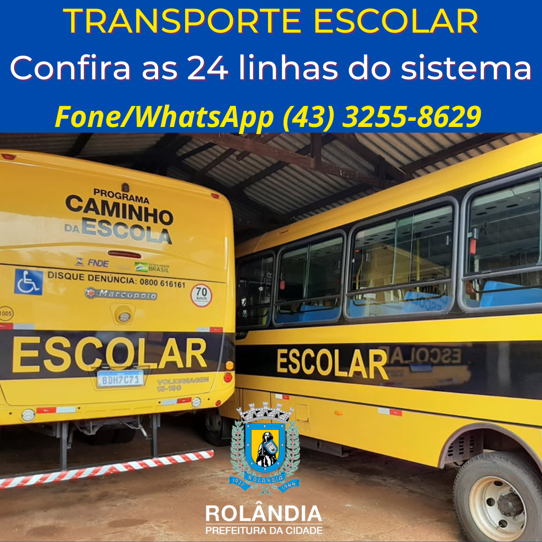 CONFIRA AS 24 LINHAS DO TRANSPORTE ESCOLAR 2022A secretaria de Educação comunica que oferta 24 linhas de transporte escolar para os estudantes regulares de 2022, devidamente cadastrados no sistema e com a carteirinha. Podem receber o benefício, a...