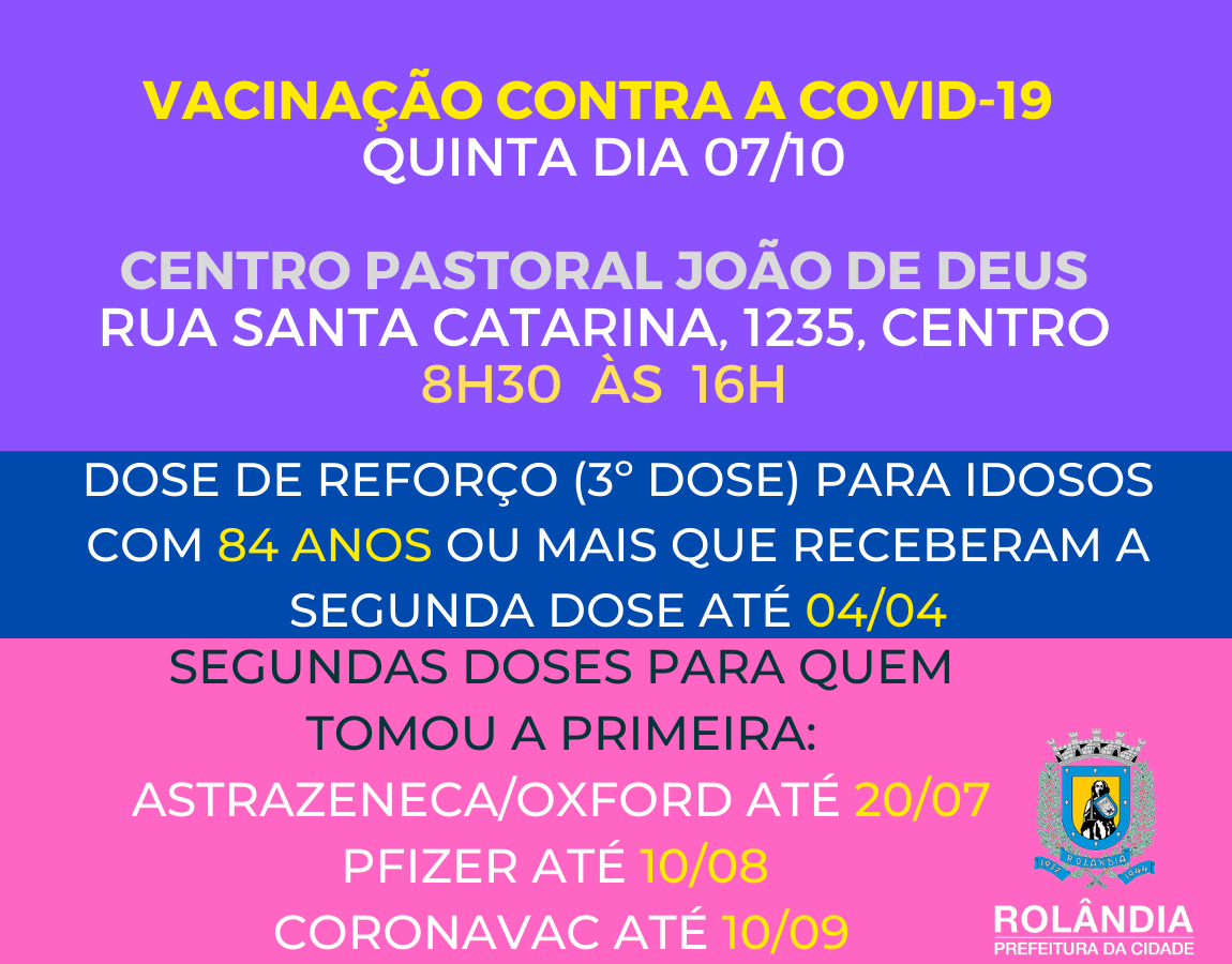 Em continuidade a nossa Campanha PARANÁ ROSA ROLÂNDIA 2021 - A PREVENÇÃO PODE MUDAR SUA HISTÓRIA - NESTE SÁBADO (09/10) TEREMOS PIT STOP DA SAÚDE NO CALÇADÃO*DATA: Sábado - 09/10/21**HORÁRIO: 9h às 12h*Solicitações de mamografiasTestes ...