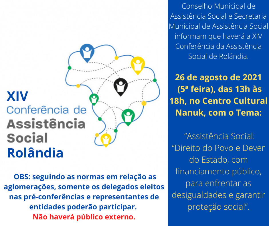 XIV CONFERÊNCIA MUNICIPAL DE ASSISTÊNCIA SOCIAL SERÁ DIA 26 MAS NÃO TERÁ PÚBLICO EXTERNOO Conselho Municipal de Assistência Social - CMAS, lotado na Secretaria Municipal de Assistência Social, informa que a XIV Conferência Municipal de Assis...