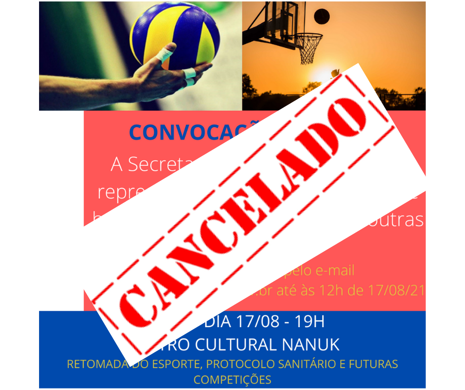 COMUNICADO - CANCELAMENTO DE REUNIÃO TÉCNICA - ESPORTESA Seretaria Municipal de Esportes, comunica que, devido ao novo Decreto Municipal nº 300, da data 16/08/2021, resolve CANCELAR a Reunião Técnica que seria realizado no dia de hoje. Após aca...