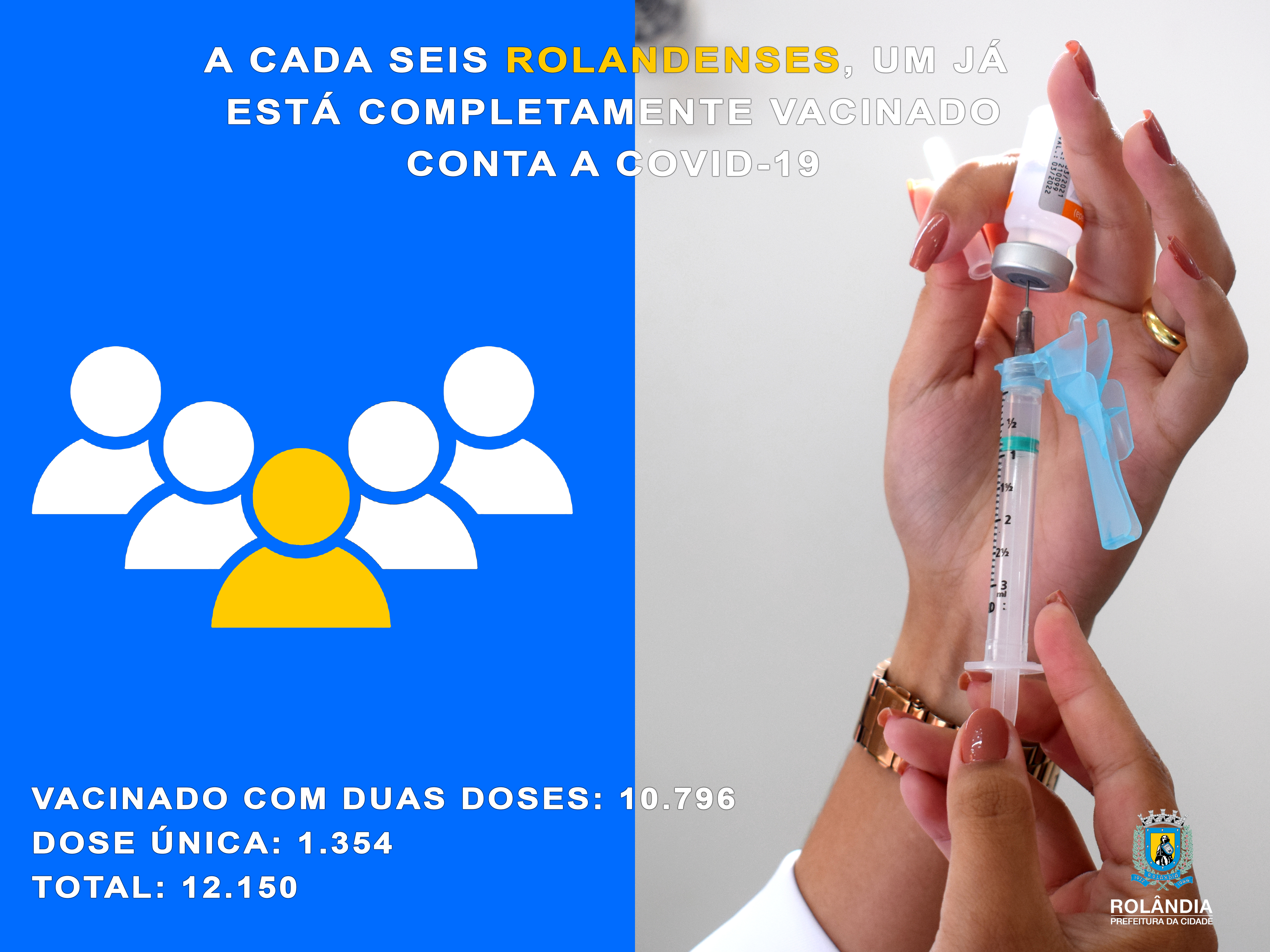 A CADA SEIS ROLANDENSES, UM JÁ ESTÁ COMPLETAMENTE VACINADO CONTRA A COVID-19 VACINADO COM DUAS DOSES: 10.796 DOSE ÚNICA: 1.354 TOTAL: 12.150...
