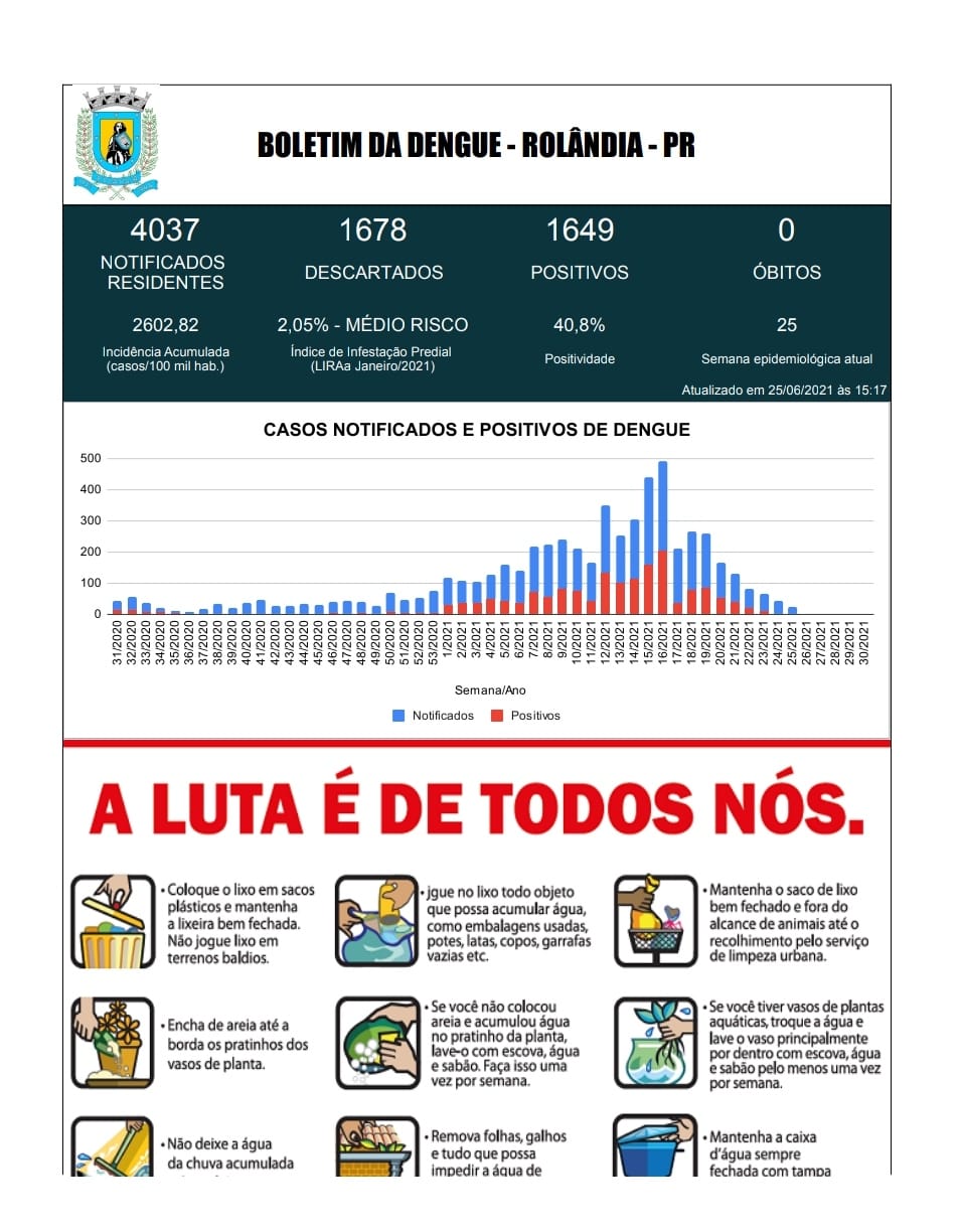 A Secretaria Municipal de Saúde informa que foram registradas 45 novas contaminações. Rolândia tem atualmente 158 pacientes com covid-19, sendo 151 em isolamento domiciliar e 7 internados em hospitais (sendo quatro em UTI). São 182 óbitos em ...