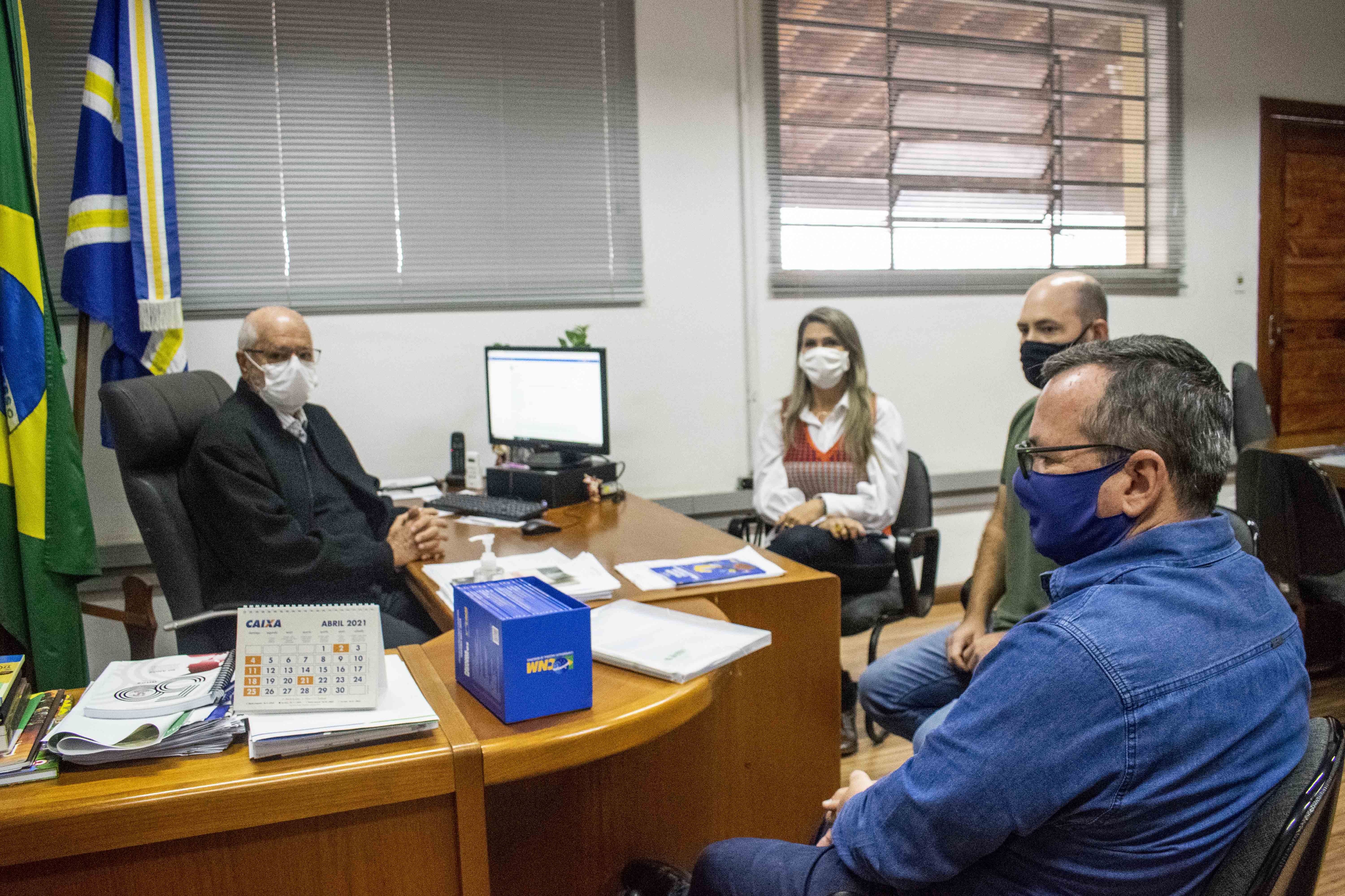 O Prefeito Ailton Maistro, o Chefe de Gabinete Sérgio Domingues e o Secretário de Assistência Social, Diego Silva, receberam no gabinete, o comandante do 15º Batalhão da Polícia Militar, Tenente-coronel Roberto e o Tenente Anderson, para disc...
