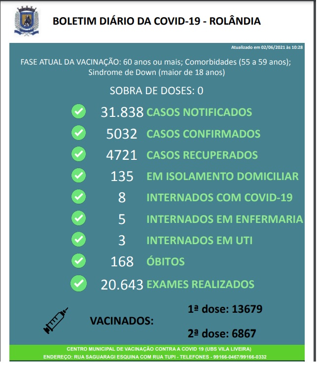 BOLETIM COVID-19Com pesar e solidariedade aos familiares e amigos, a Secretaria Municipal de Saúde informa três óbitos registrados em decorrência de covid-19: 1- 45 anos, sexo femininoExame positivo: 15/05/2021Estava internado Hospital Zona N...