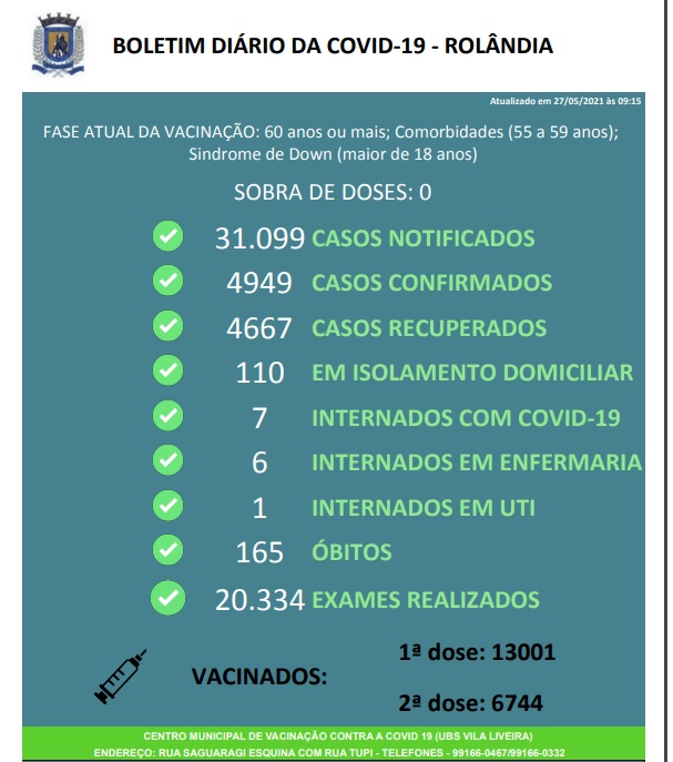 ROLÂNDIA ALCANÇA 13 MIL PESSOAS VACINADAS CONTRA A COVID-19!MESMO ASSIM, NÃO DÊ MOLEZA PARA O CORONAVÍRUS!MANTENHA O DISTANCIAMENTO SOCIAL, USE MÁSCARA, HIGIENIZE AS MÃOS E, SE PUDER, FIQUE EM CASA!...